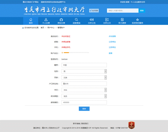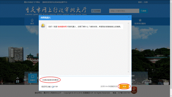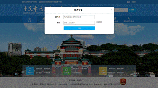 进入重庆市网上行政审批大厅主界面,主界面如图1.1.1所示: